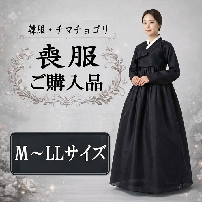 韓国葬儀や法要でご家族やご親族として失礼のない装いを整えたい方は、デザインや生地だけでなく、サイズ選びにもぜひ目を向けてみてください。夢市場では、見た目の上品さと着やすさの両方を大切にしながら、安心してお召しいただける黒い喪服のチマチョゴリをご案内しています。
